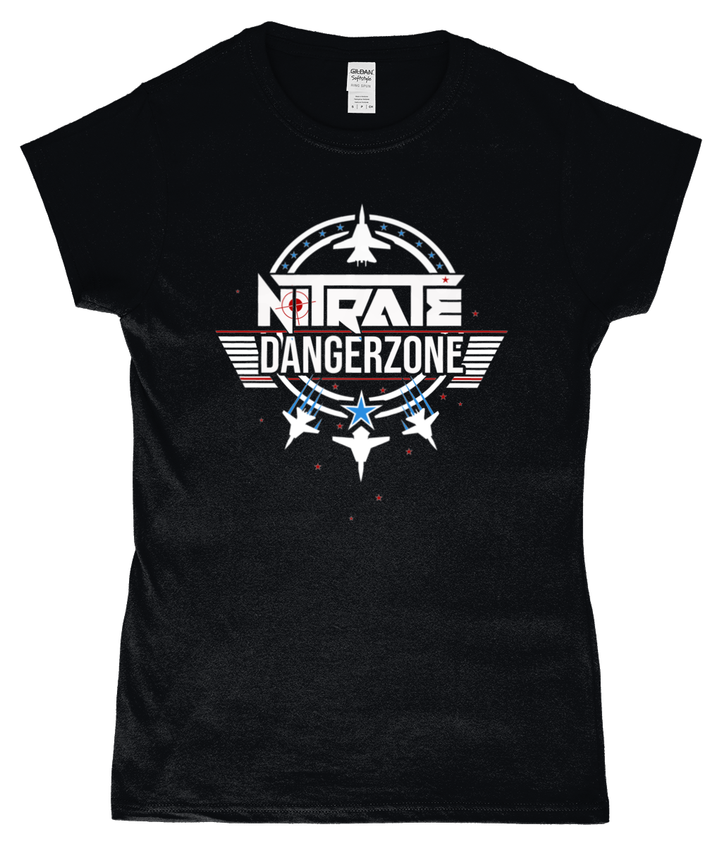 GD72-DS: Dangerzone Design (Ladies Fit Black T-Shirt)