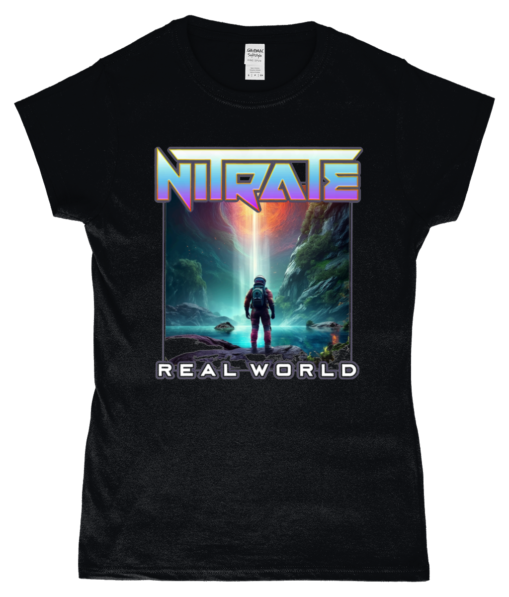 GD72-DS: Real World V1 Design (Ladies Fit Black T-Shirt) quantity
