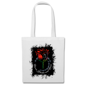 W201-SS: Razor Blades & Roses Design (White Tote Bag)