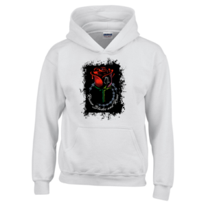GD57B-SS: Razor Blades & Roses Design (Youth Fit White Pullover Hoodie)