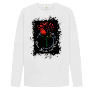 GD11-SS: Razor Blades & Roses Design (Long Sleeve White T-Shirt)
